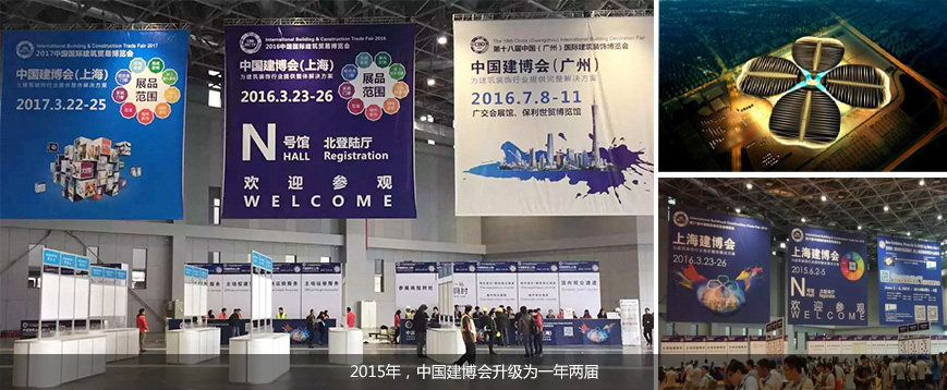 1999年,中国建博会(广州)在广州创建。2015年升级为一年两届。2016年7月8日-11日,第十八届中国建博会(广州)将在中国进出口商品交易会展馆和广州保利世贸博览馆举行,年度盛会热浪势必席卷整个行业。